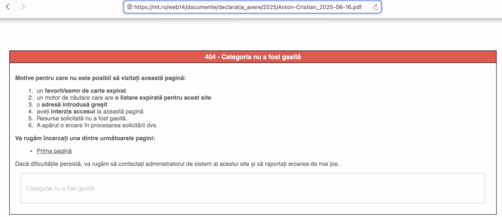 - Declarația sa de avere a dispărut de pe site-ul Ministerului Transporturilor miercuri, 27 august, a doua zi după ce a fost sunat de reporterul Snoop.