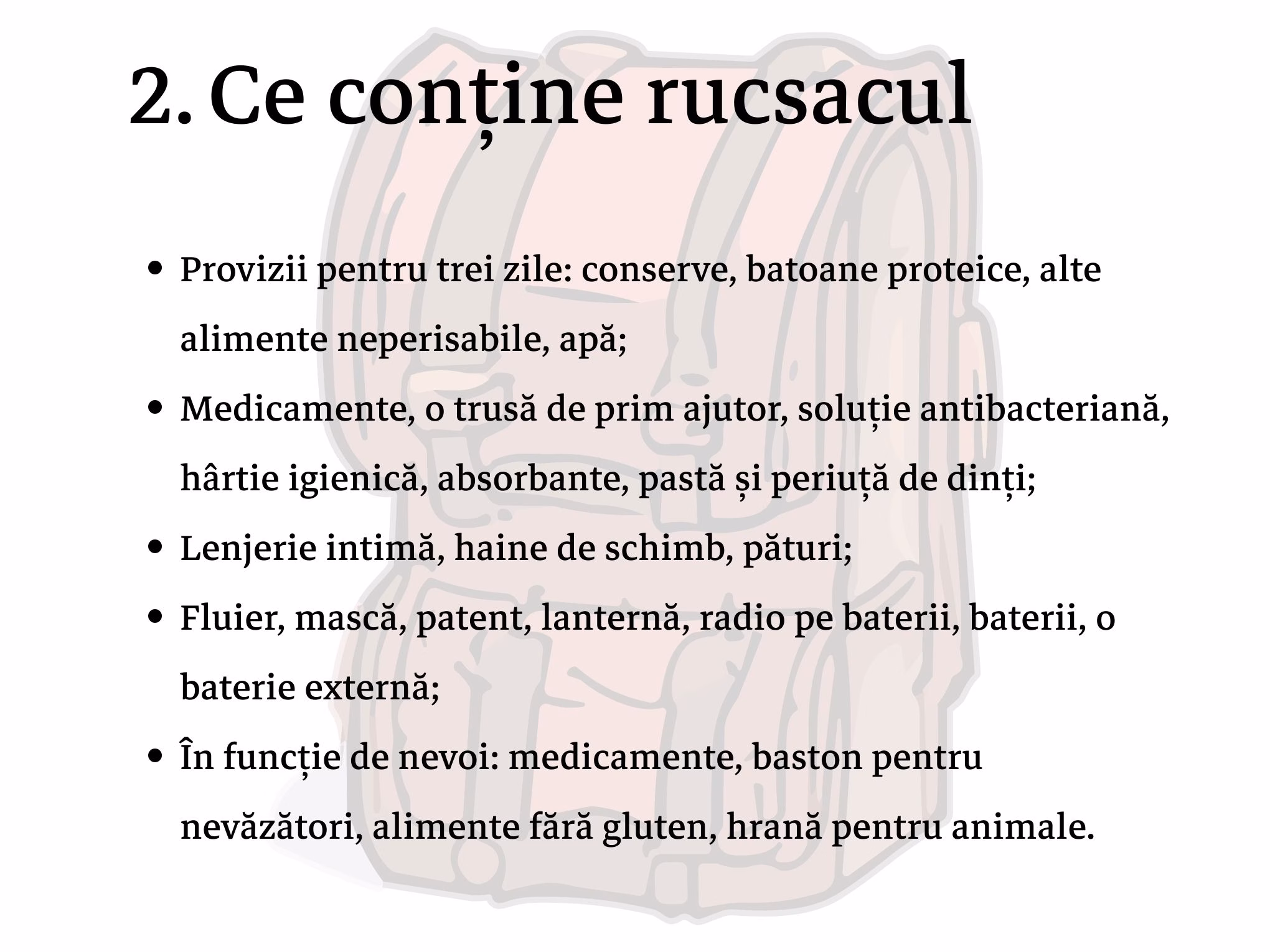 CE TREBUIE SĂ CONȚINĂ RUCSACUL