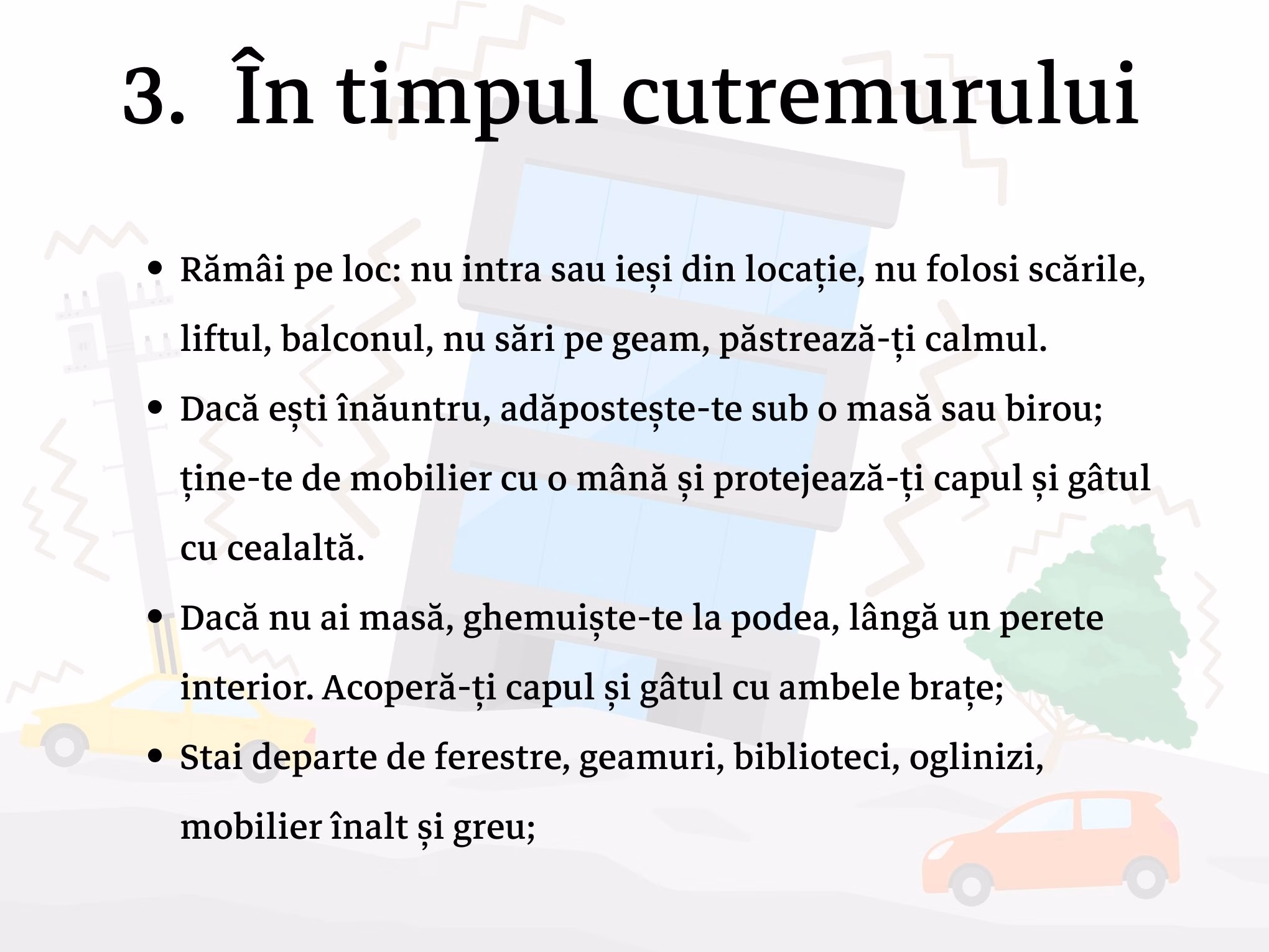 Ce să faci în caz de cutremur (versiunea text pentru a fi citită de screenreader; click pentru detalii)