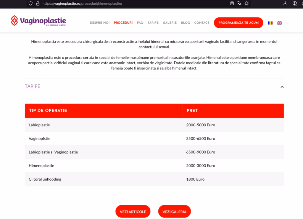 Cu toate astea, medicul vinde himenoplastii contra sumei de 2.000-3.000 euro.