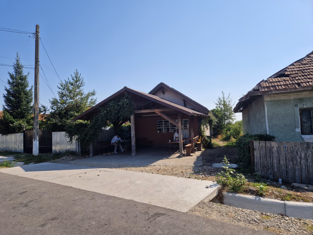 Câteva bănci așezate în fața intrării, unde lumea se oprește pentru o bere sau un suc. În magazin, vânzătoarea s-a scuzat că nu funcționează POS-ul „din cauza internetului”.